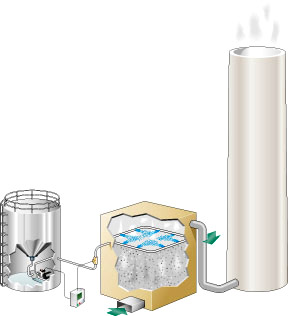 폐기물-에너지 연소 시설의 선도적인 제조 및 운영 업체는 풀루 가스 탈황에 사용되는 석회 슬러리를 이송하기 위한 효율적인 대안을 찾기 시작했습니다. 전통적인 방법은 배출 타워에 5 %의 석회 슬러리와 95 %의 물을 분사하여 배출 가스가 통과하는 장벽을 만드는 것이었습니다. 석회 슬러리는 유황에 부착되어 타워의 바닥으로 떨어질 것이고, 물은 배출 온도를 냉각시키는데 사용됩니다. 기존의 모노 펌프는 이 어플리케이션에서 만족스럽게 작동했습니다.